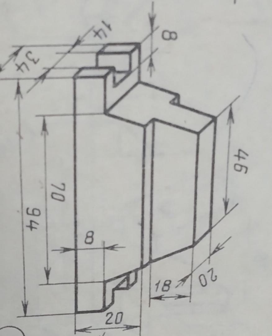 Выполнить по аксонометрической проекции чертеж модели ( построить три проекции и нанести размеры )