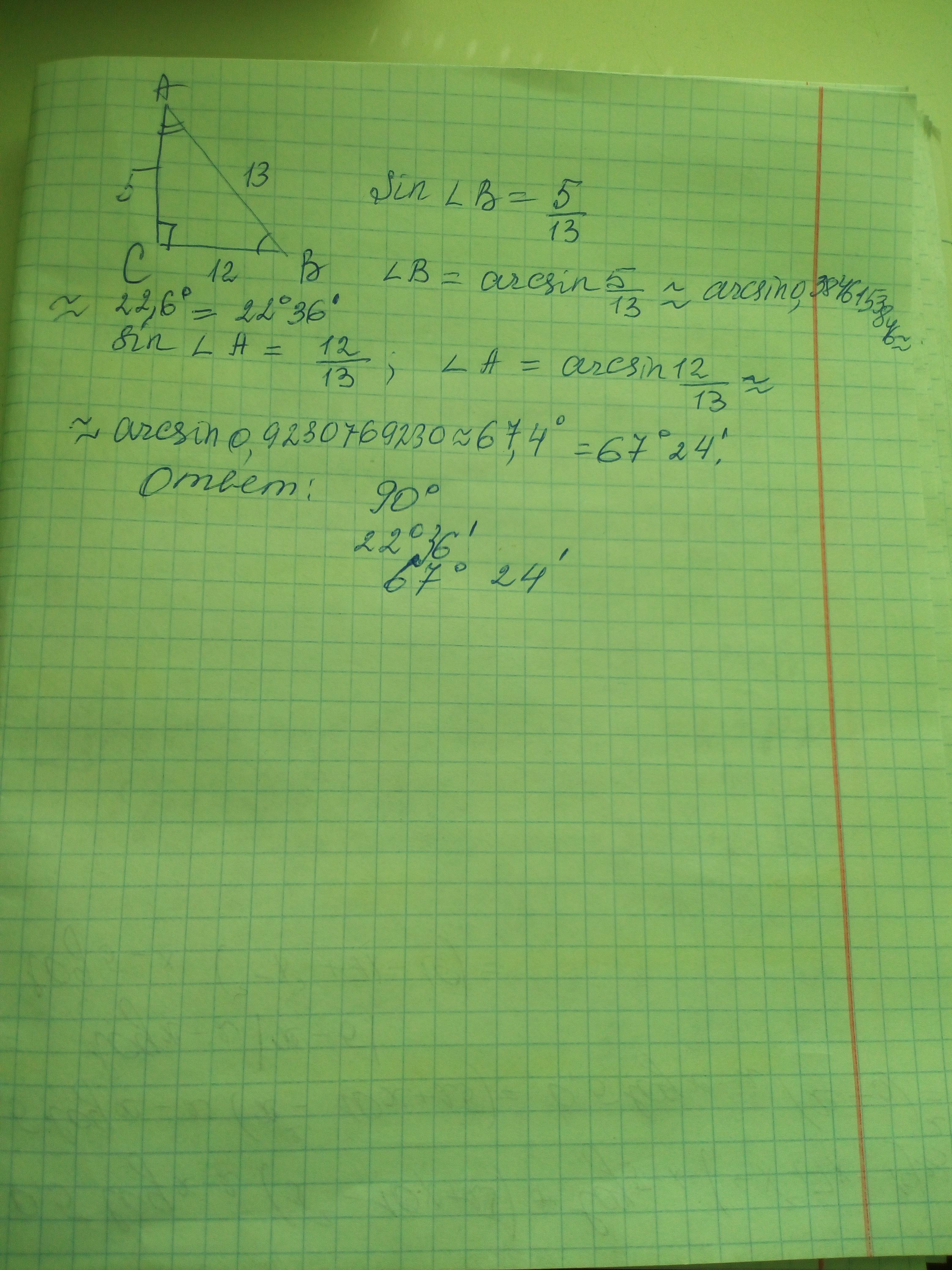Видно, что это прямоугольный треугольник, т.к. √(5²+12²)=√(25+144)=
