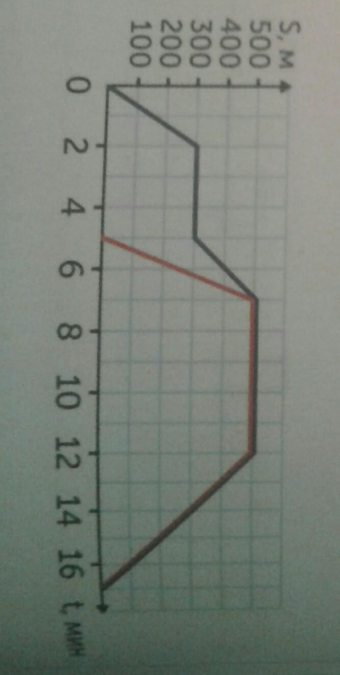 Выполни задание. Рассмотри грпфик движения Армана ( синяя линия ) и Светы ( красная линия) . Определи скорость Армана в первые две минуты пути. Что он делал следущие 3 минуты? На сколько позже начала движение Света? Определи скорость Светы в первые две минуты ее пути . Почему линии движения с 7 по 12 мунуты идут параллельно оси времени ?