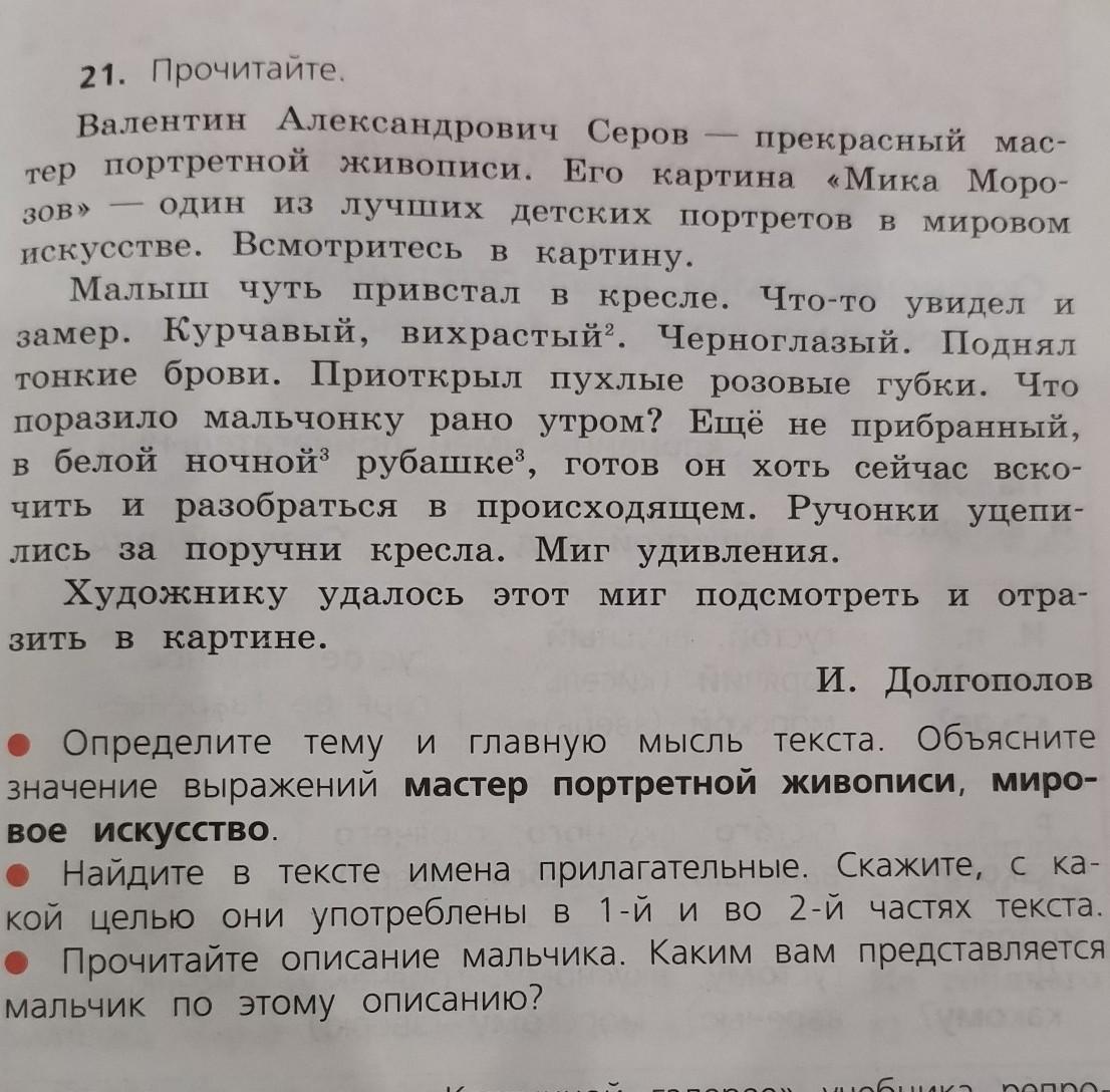 Валентин Александрович серов определите тему и главную мысль текста объясните значения выражений мастер портретной живописи мировое исскуство