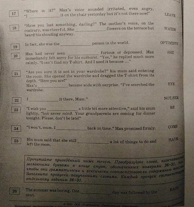 ПОЖАЛУЙСТА ПОМОГИТЕ С АНГЛИЙСКИМ ЯЗЫКОМ, буду безумно благодарна, грамматика, просто ответы с 17 по 26
