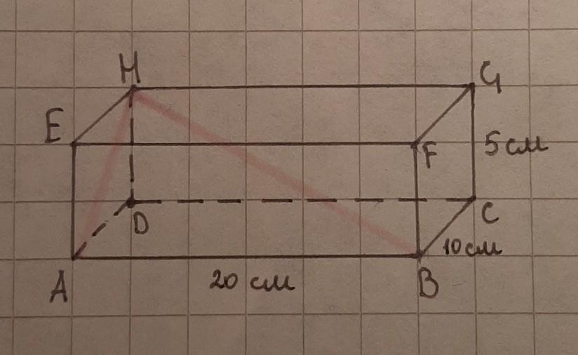 a) диагонали AH прямоугольника; б) длину HB диагонали пространства прямоугольника;