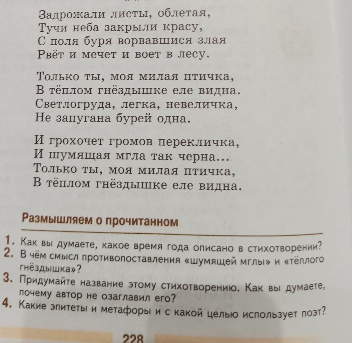 4) Метафоры: задрожали листья; тучи закрыли; буря ворвавшись, воет, рвёт и мечет ; грохочет перекличка;