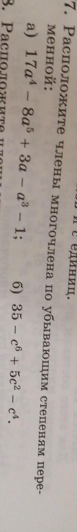 Расположите члены многочлена по убывающим степеням переменной. Пожалуйста помогите, время поджимает, а я так ничего и не понимаю.