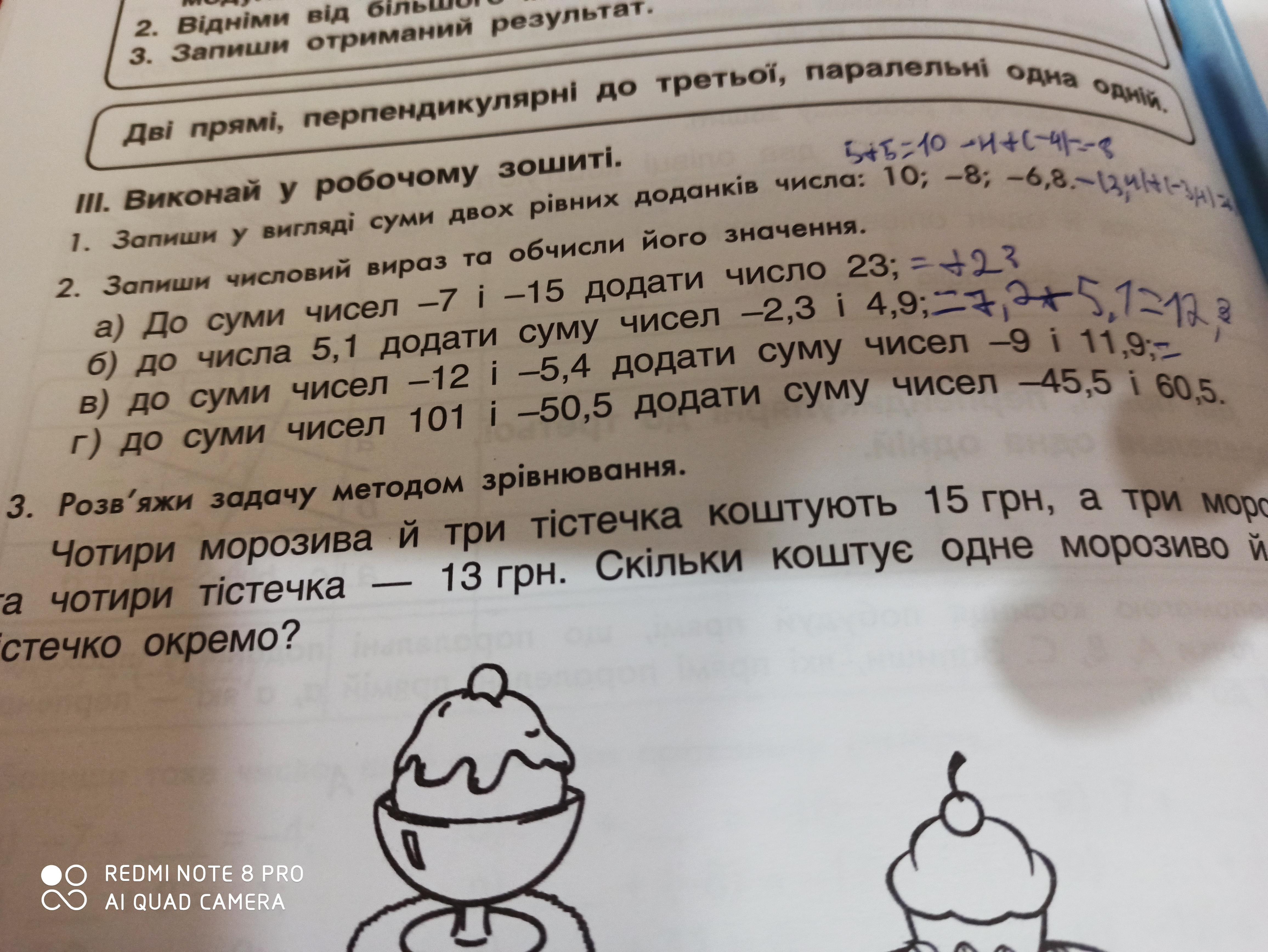 а) (-7) + (-15) + 23 = -22 + 23 = 1