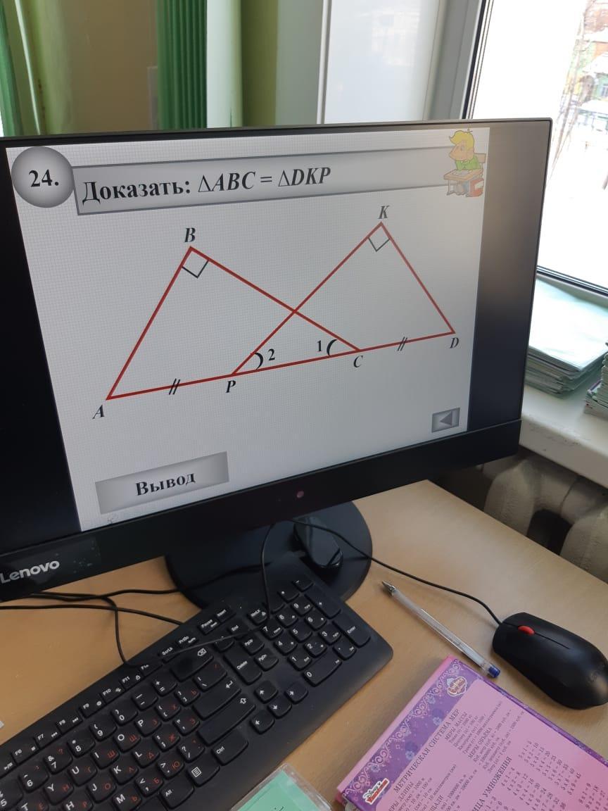 Из условия АР=DC => АР+РС=DC+PC =>АС=PD -гипотенузы и <1=<2 => ∆АВС=∆DKP по двум углам и гипотенузе