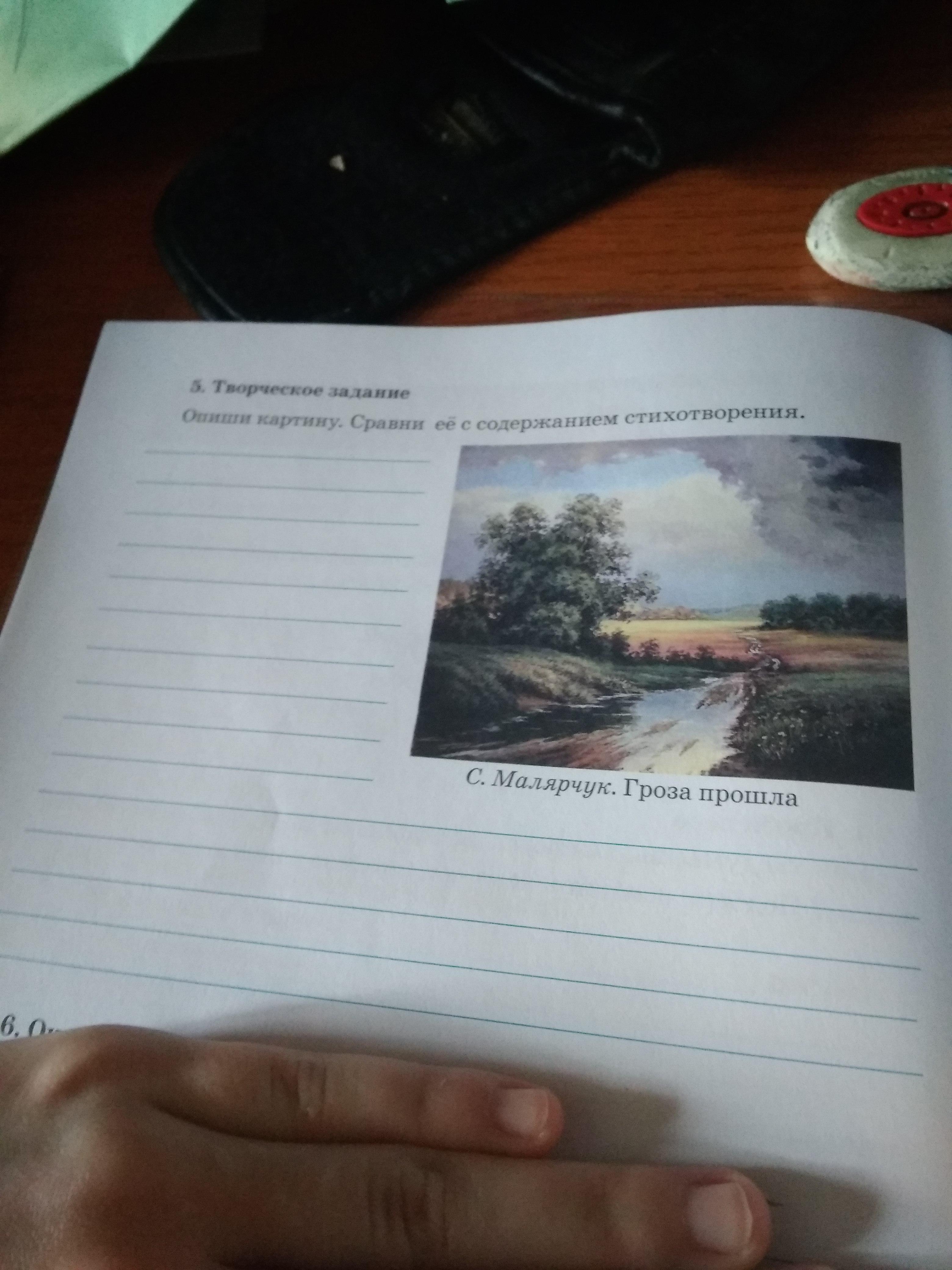 Ответ:течет речка,рядом большой лес,после растет пшеница.Идет темная темная туча.Будет дождь все ребята выйдут под дождь.