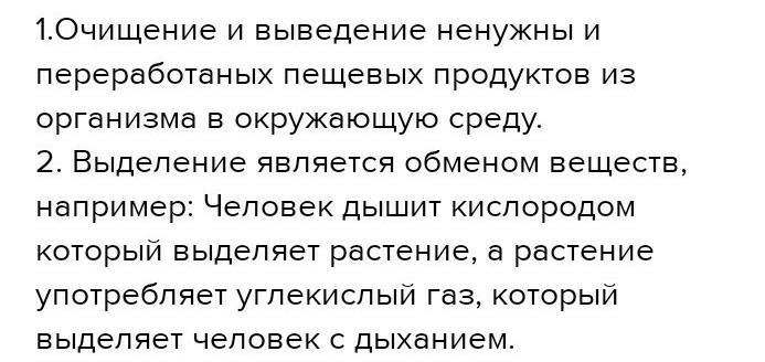 1. Укажите два значения выделения в жизнедеятельности организмов.