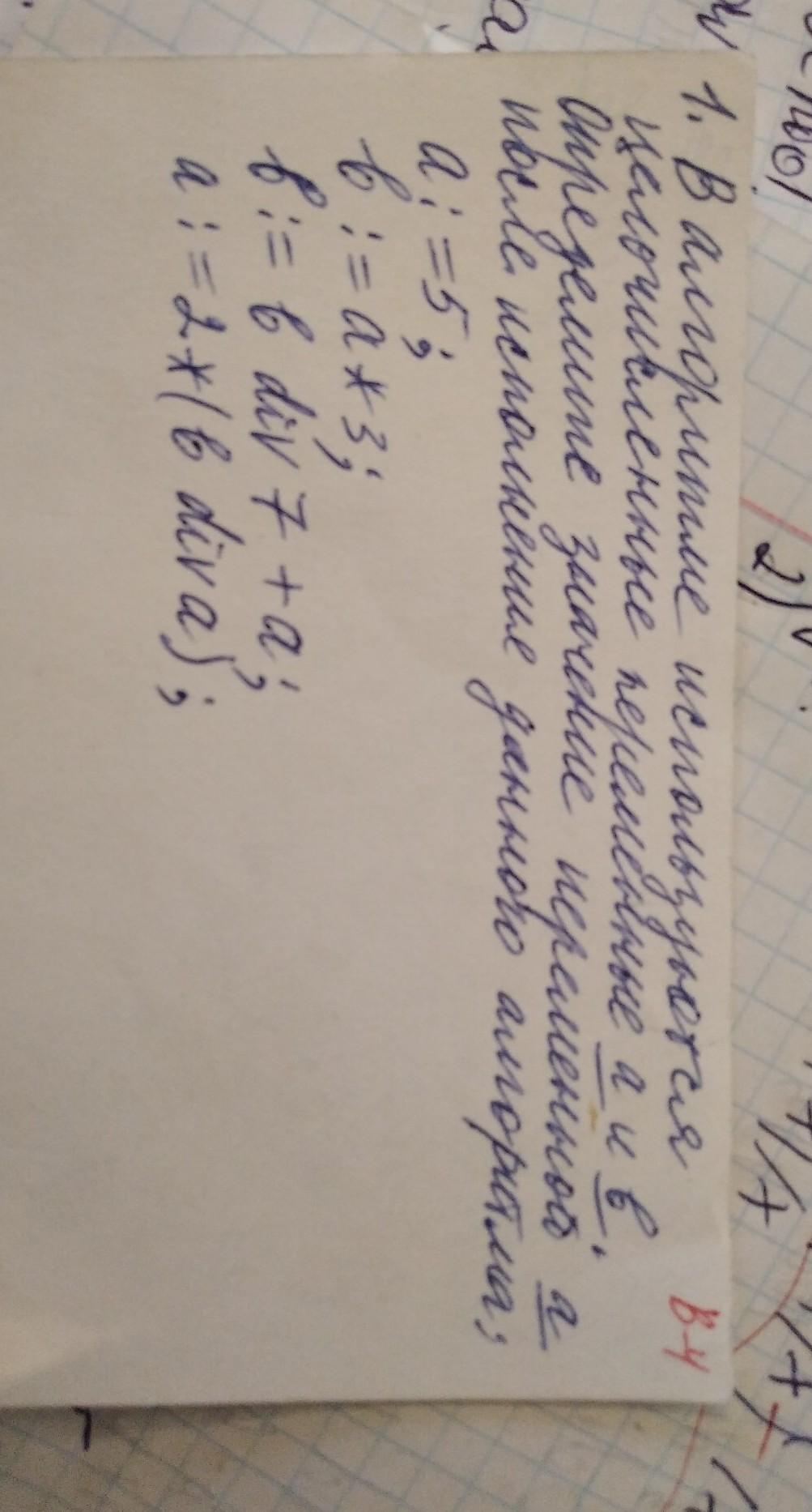 a = 5; b = b div 7 + a = 15 div 7 + 5 = 2 + 5 = 7