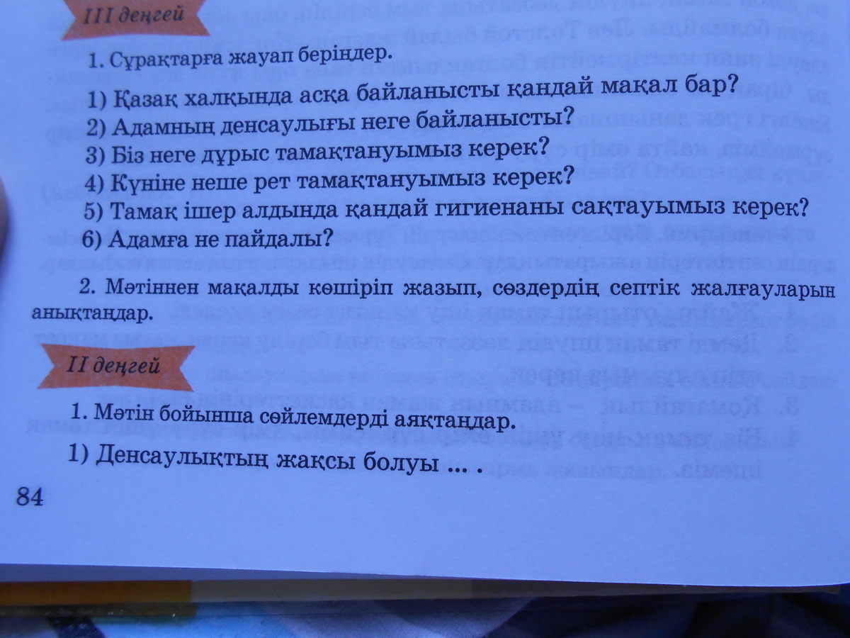 2 денгей1)Денсаулықтың (ілік септік жақсы болуы адамның дұрыс тамақтануына байланысты.