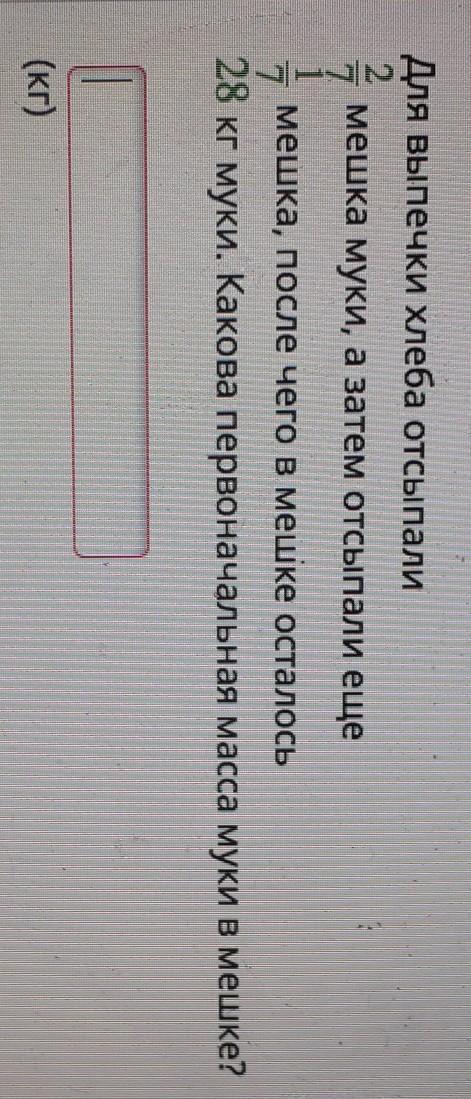 из него высыпали 3/7 => осталось 4/7=28кг =>