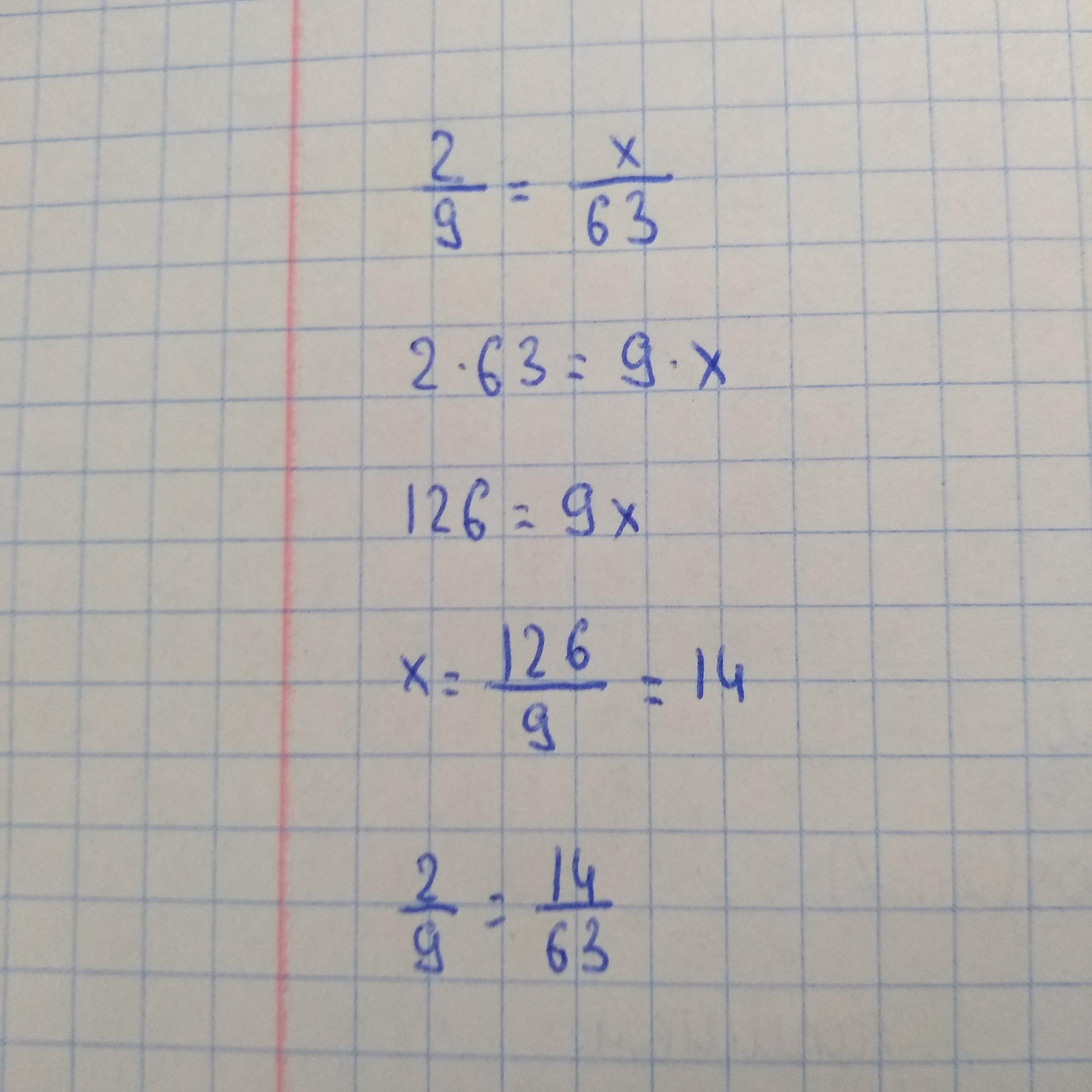 нашли недостающее число до 63. // 63:9=7//т.к.знаменатель умножаем на 7 ,то и числитель тоже умножаем на 7.(это как вариант).