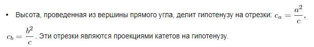 Рассмотрим прямоугольный треугольник АОВ. Высота ОК делит гипотенузу на отрезки, называемые проекциями катетов.