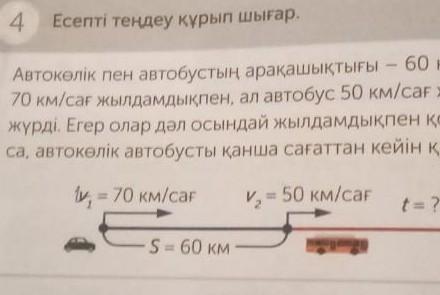 t=s/u1+u2=60км/70км/сағ+50км/сағ=1/2=0,5сағ