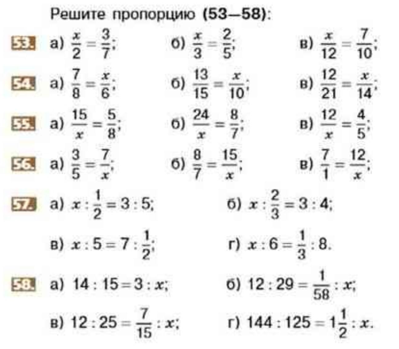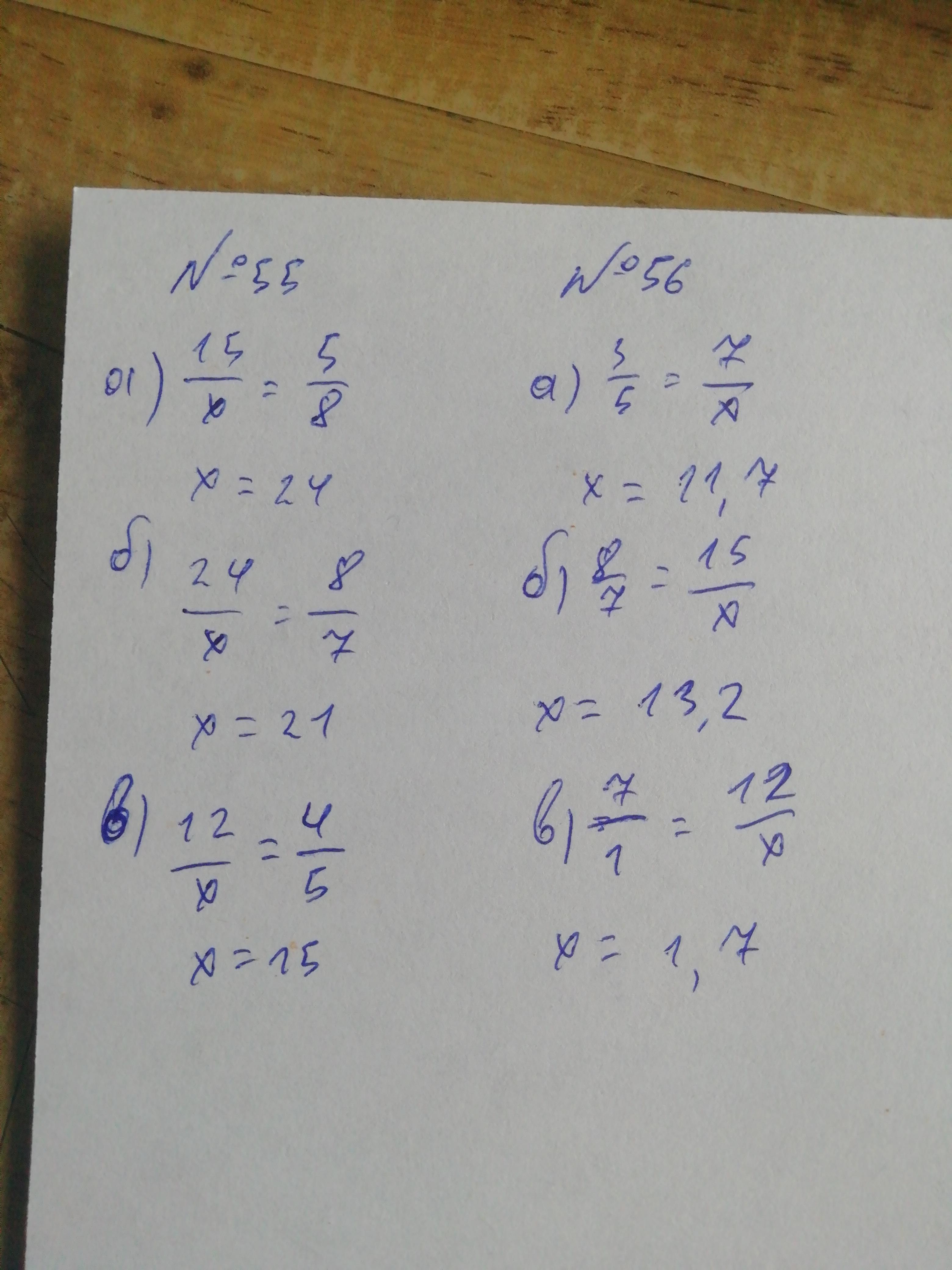 56. а) x = 35/3 б) x = 105/8 в) x = 12/7