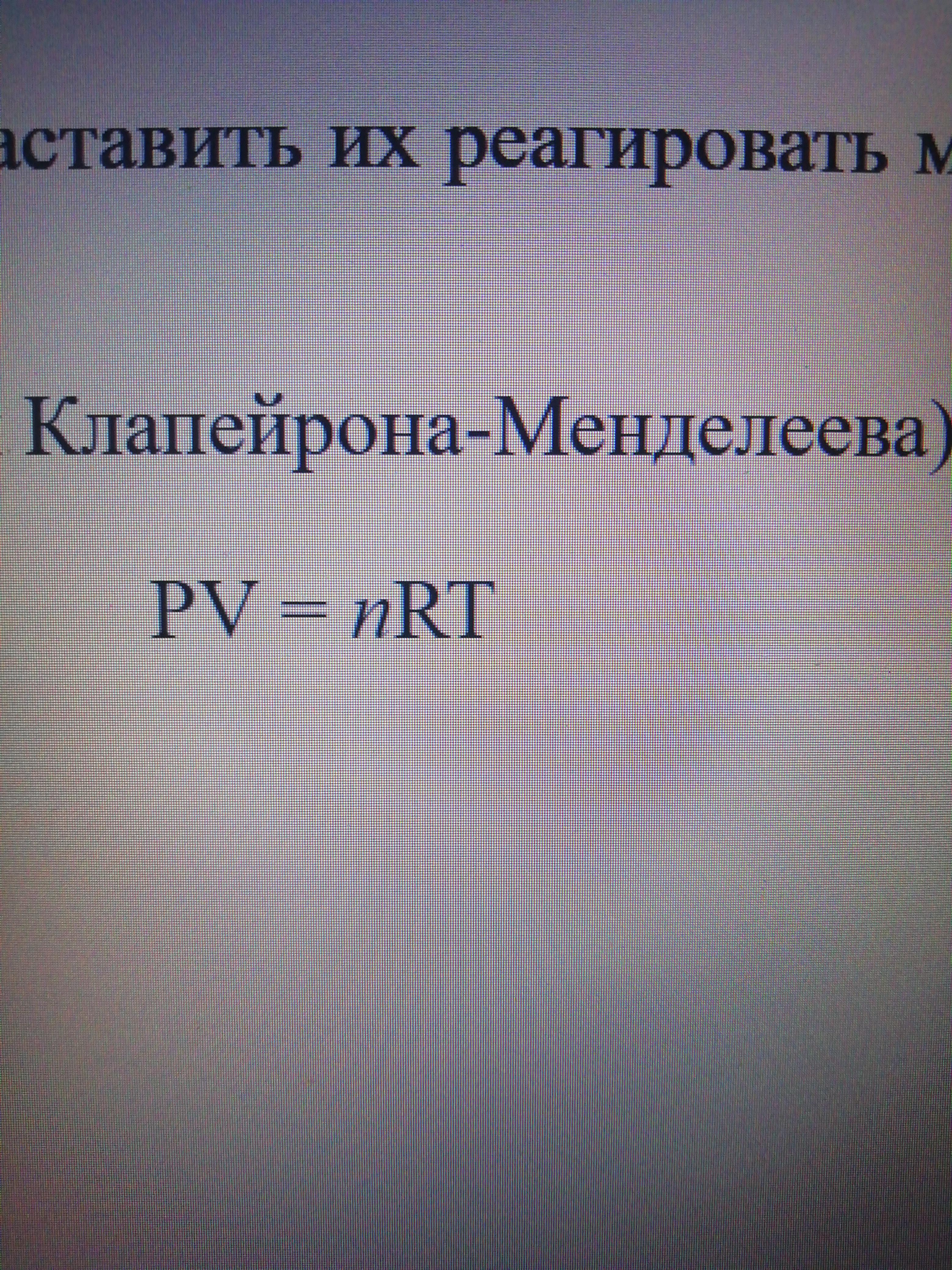 Ответ:Есть такая формула PV/T=R. Если для данной массы тогда уравнение Клапейрона -Менделеева PV=nRT