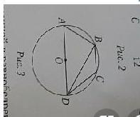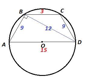 Трапеция ABCD вписана в окружность(рис.3), центр О которой лежит на большем основании AD. Найдите радиус вписанной окружности, если CD=9 см, BD=12 см.