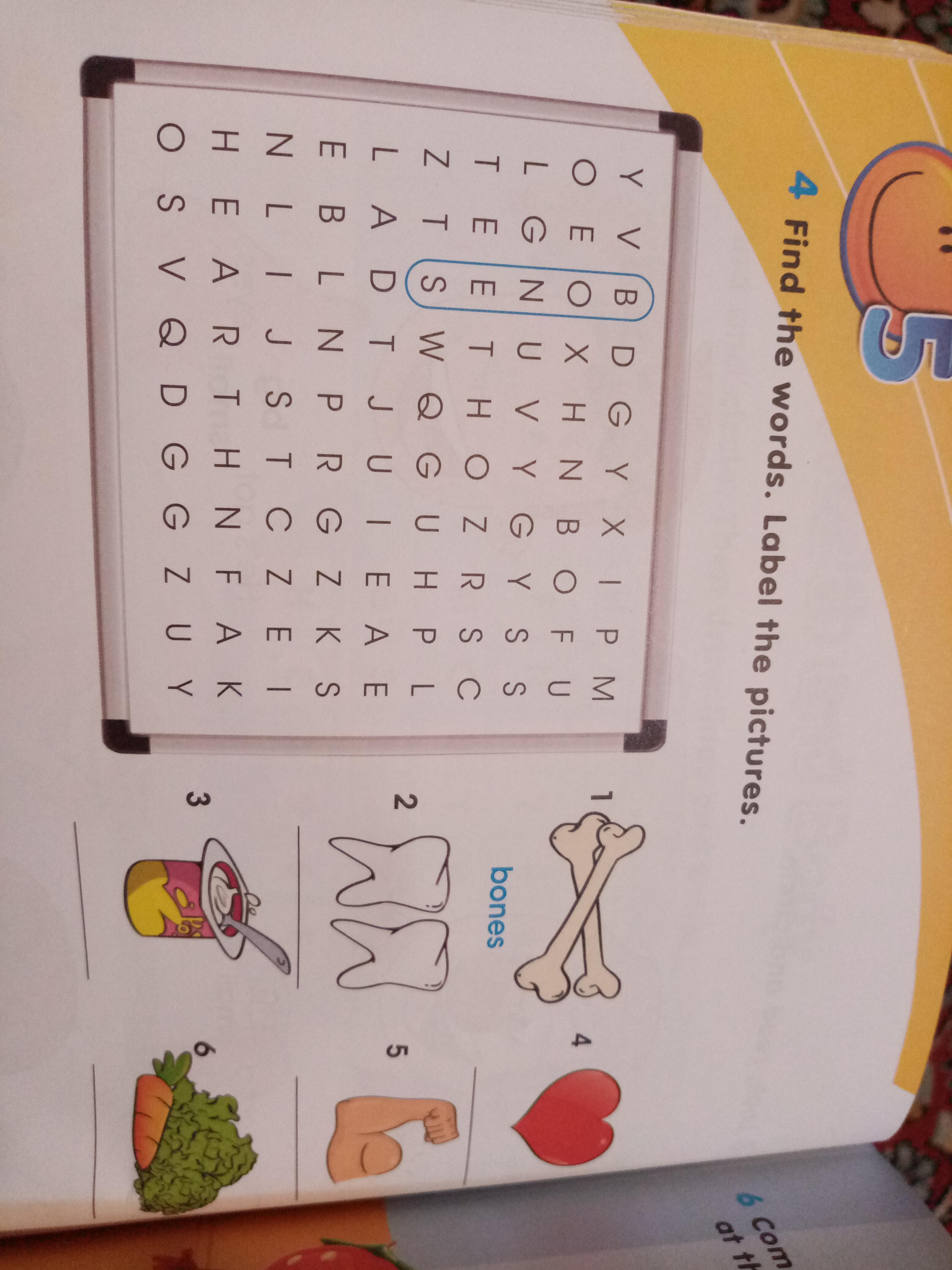 2. Teeth 3. Yoghurt 4. Heart 5. Muscles 6. Vegetables
