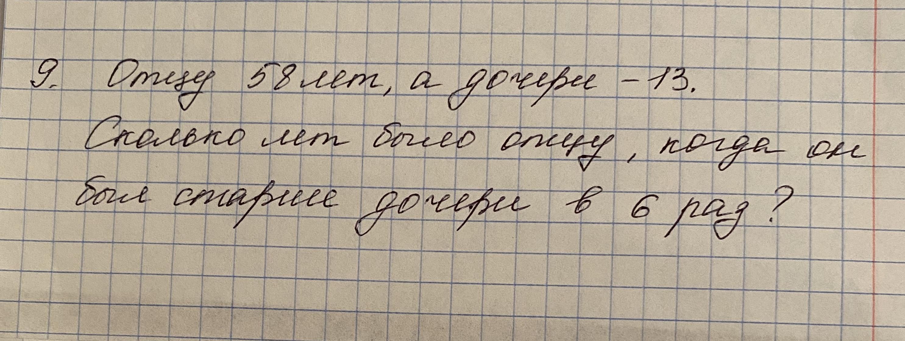 Пусть х лет назад отец был в 6 раз старше дочери.