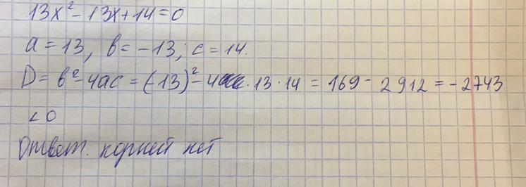 3x^2-13x+14=o. Помогите решить это уравнение. 1) напишите на листочке решение и чему равно а б с
