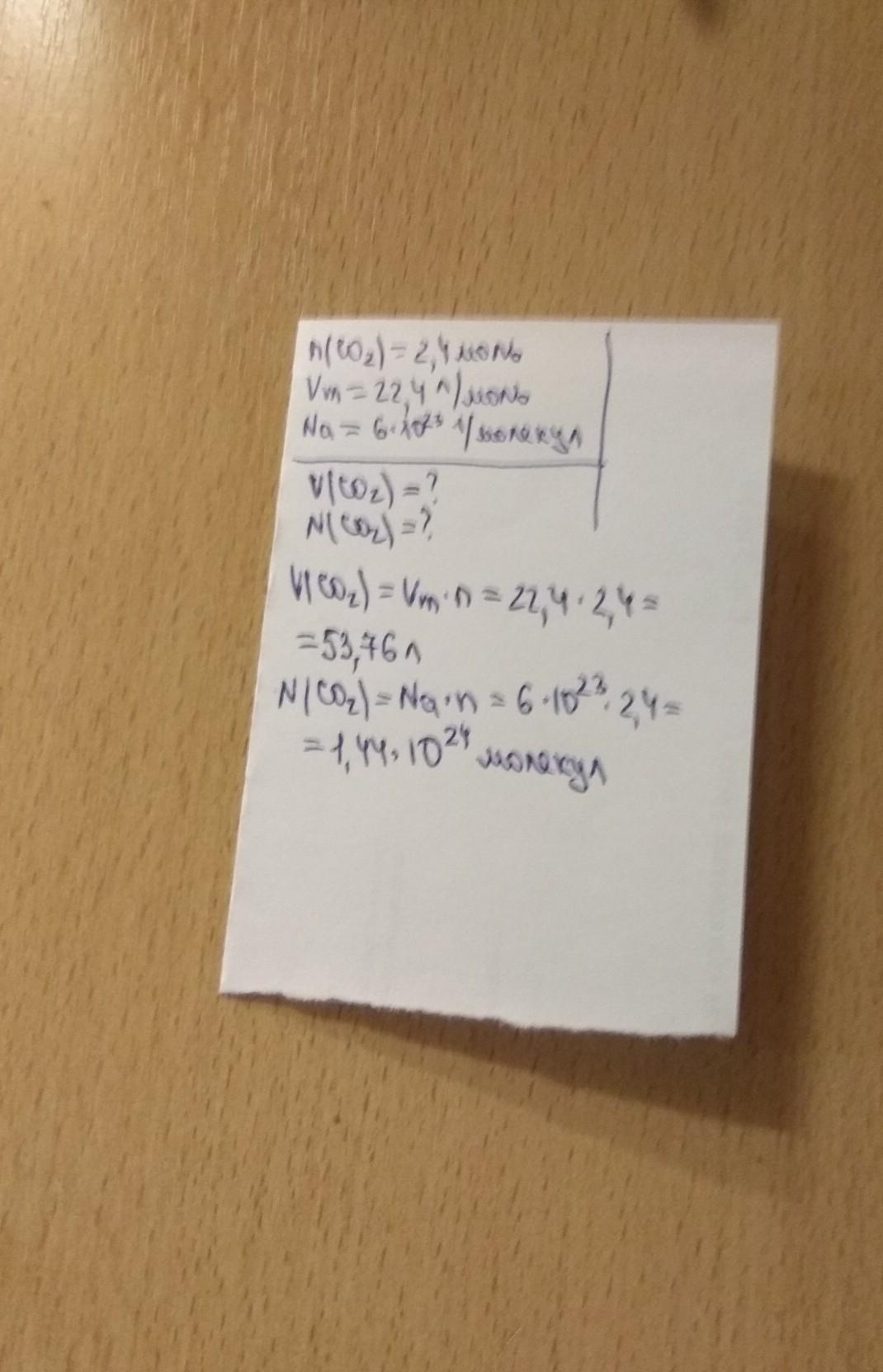 Какой объём займет углекислый газ CO2 химическим количеством 2,40 моль? Какое число молекул содержится у этой порции газа?