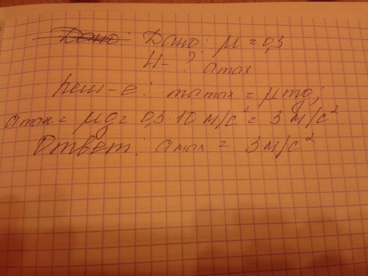 С каким максимальным ускорением может двигаться достаточно мощный автомобиль,если коэффициент трения скольжения равен 0,3?