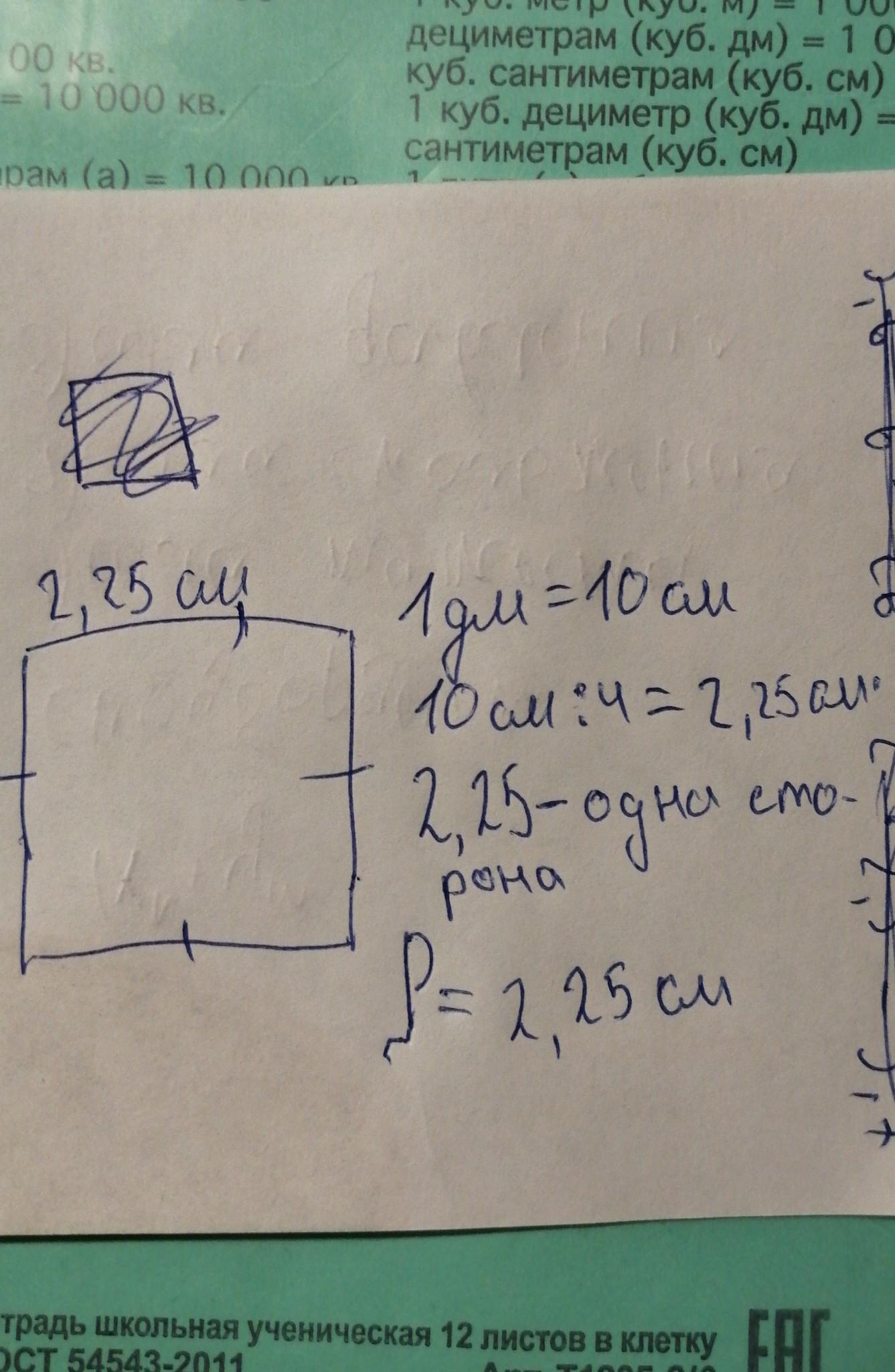 Там площадь 1 дм в квадрате, а у тебя просто 1 дм
