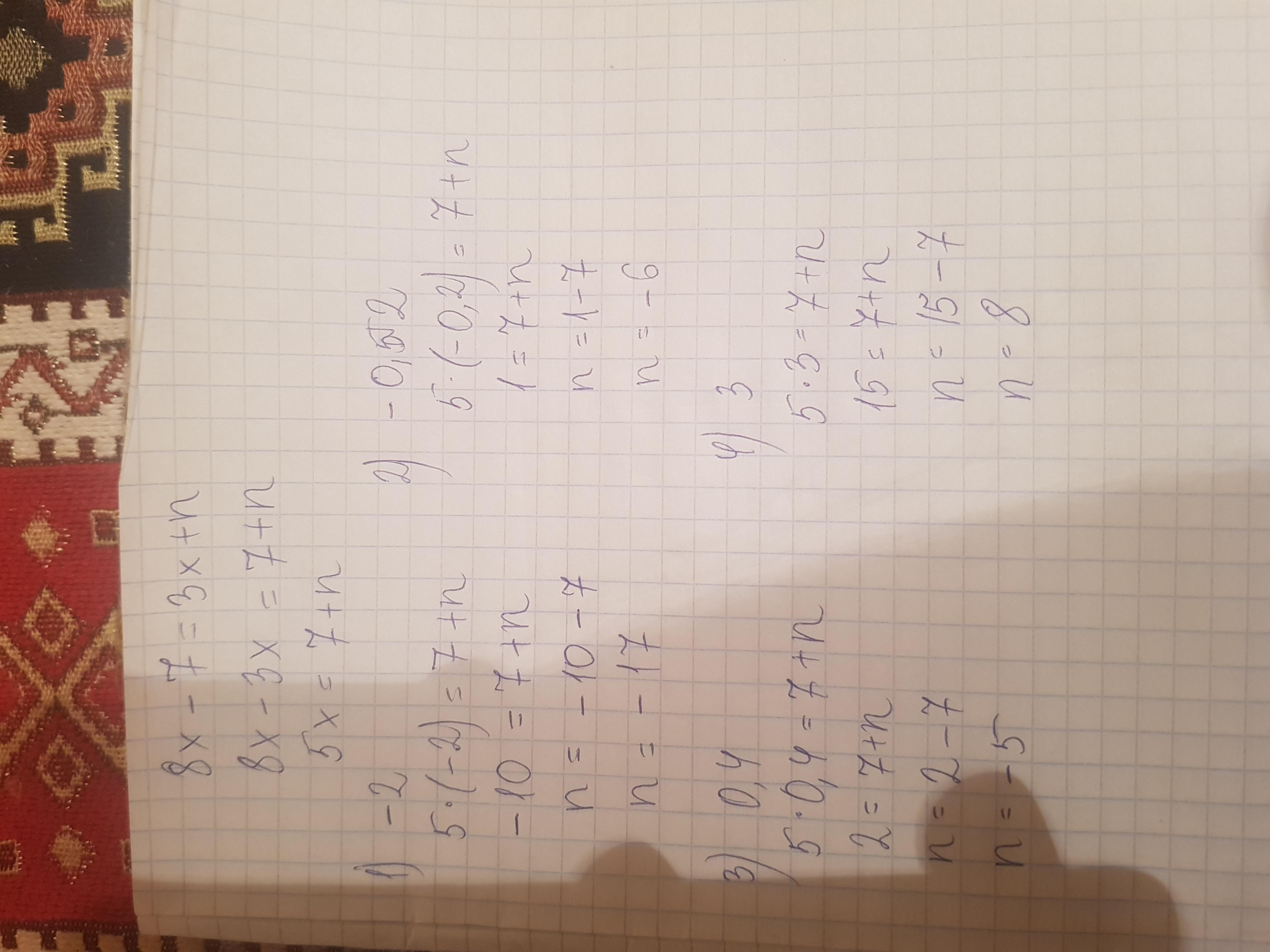 807. Дано уравнение 8х - 7 = 3х + п. Найдите п, если корнем уравнения