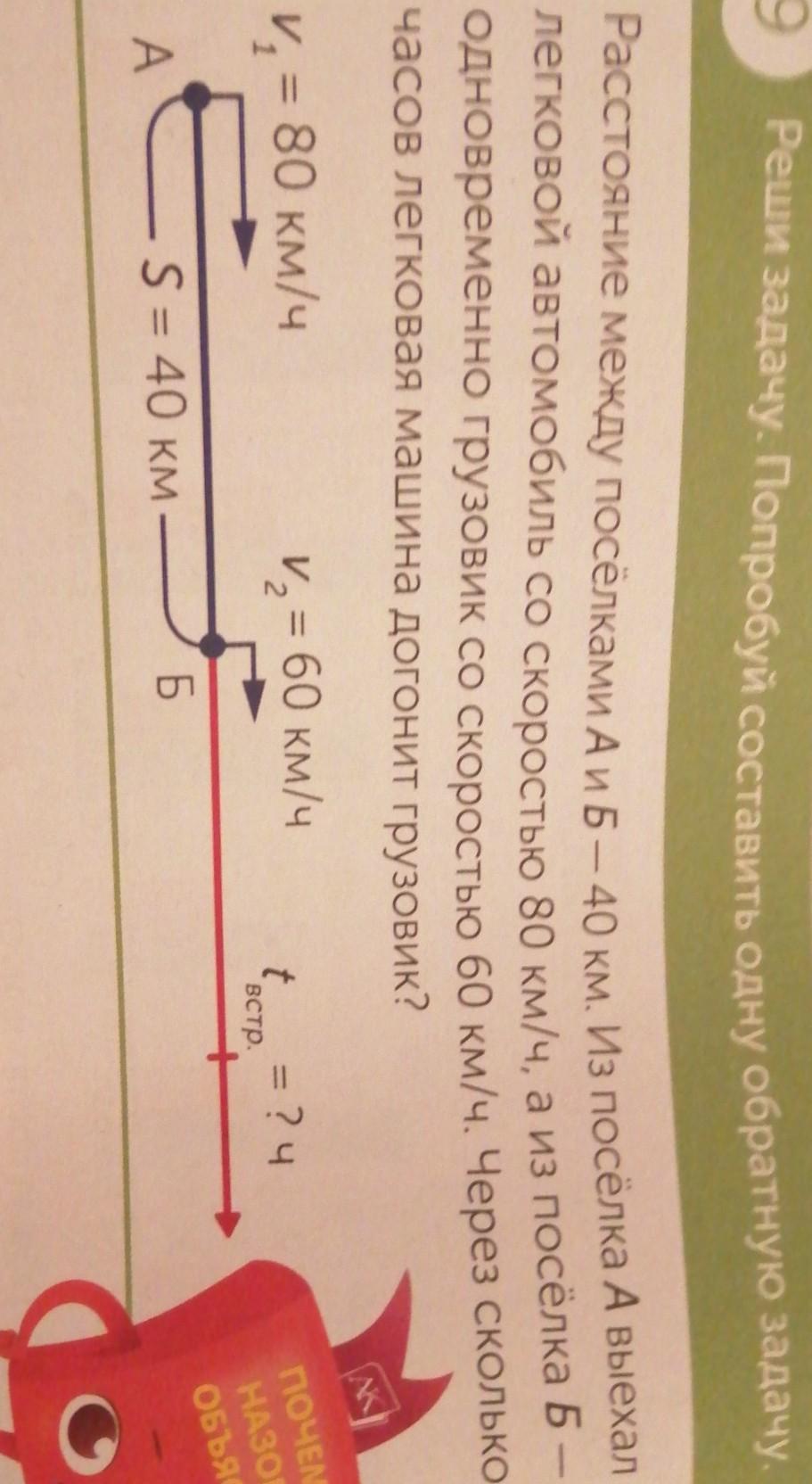 легковой автомобиль со скоростью 80 км/ч, а из посёлка Б-