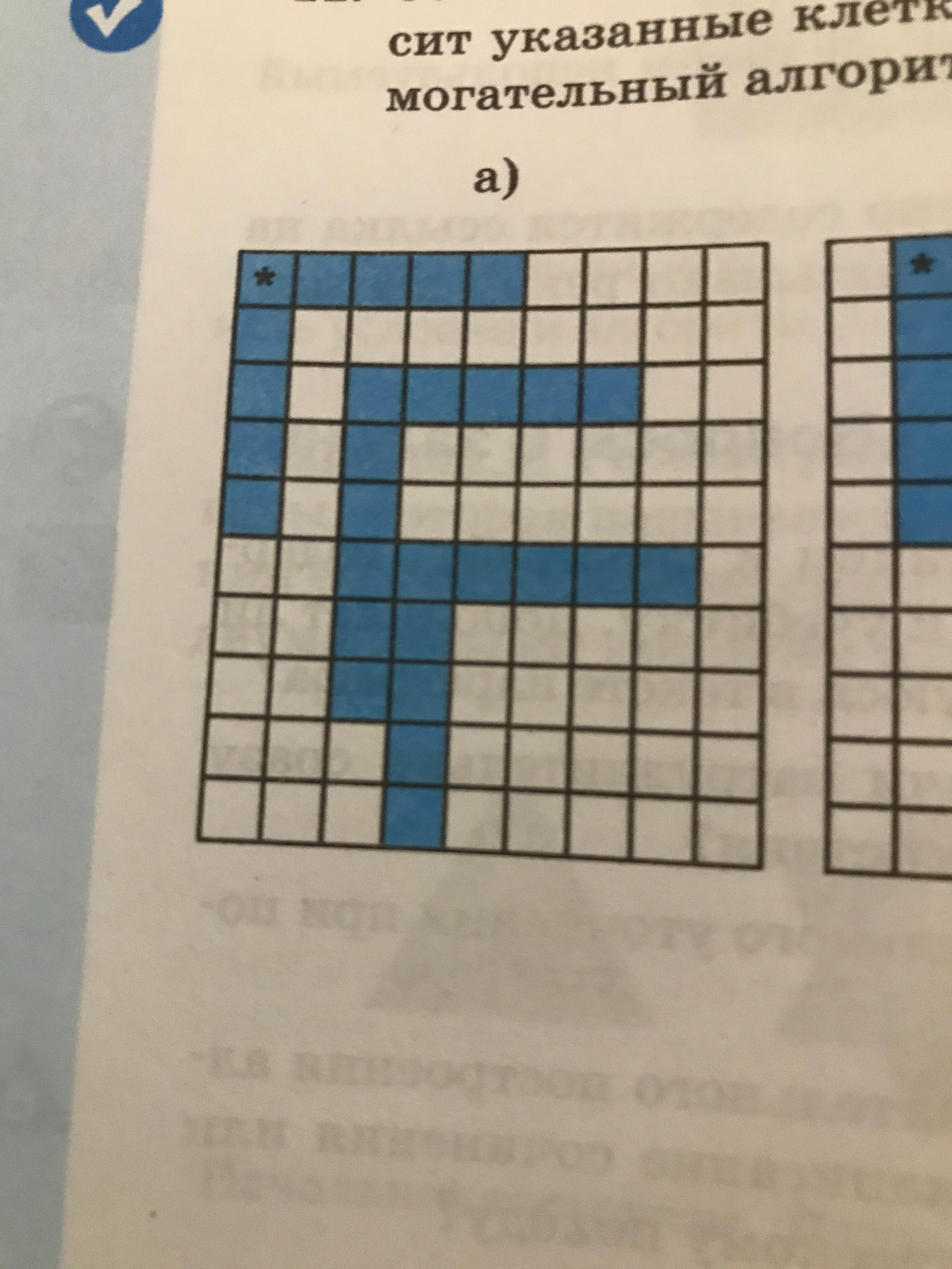 Составьте алгоритмы, под управлением которых робот закрасит указанные клетки. При необходимости используйте вспомогательный алгоритм