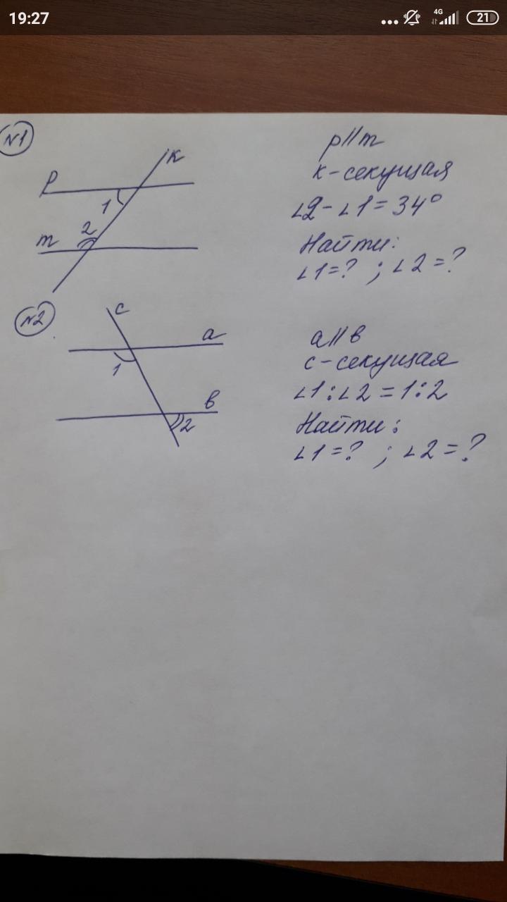 а) сумма углов 1 и 2 равна 180°, значит нужно решить систему уравнений: