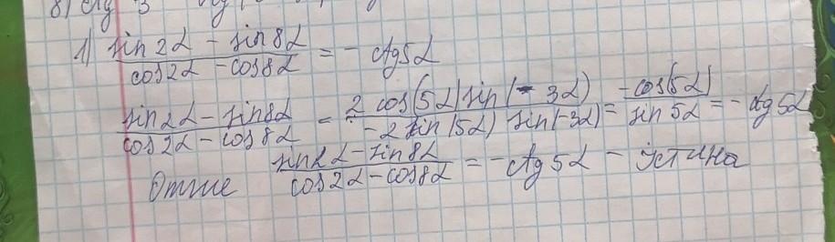 объясните пожалуйста как получилось из sin 2a - sin 8a 2cos 5a*sin-3a