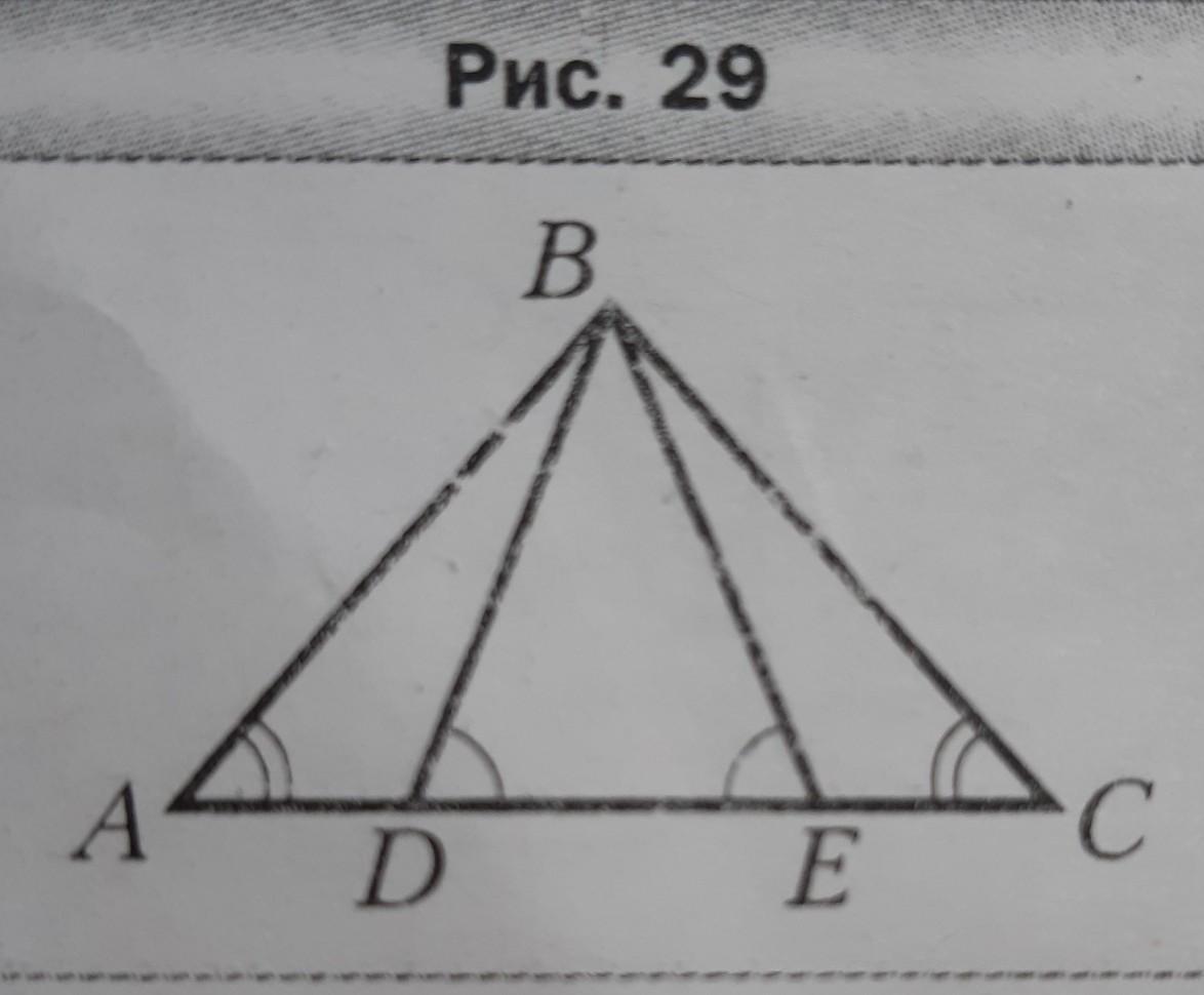 Докажем что триугольн. АВЕ=СВD => Они равны по тому что АЕ=DC угол ВАЕ=ВСD угол ВЕА=ВDC => триуг = => АВ=ВС угла DВА=ЕВС (накрест лежащие ) =>триуг АВD=СВЕ => угол ABD= углу CBE