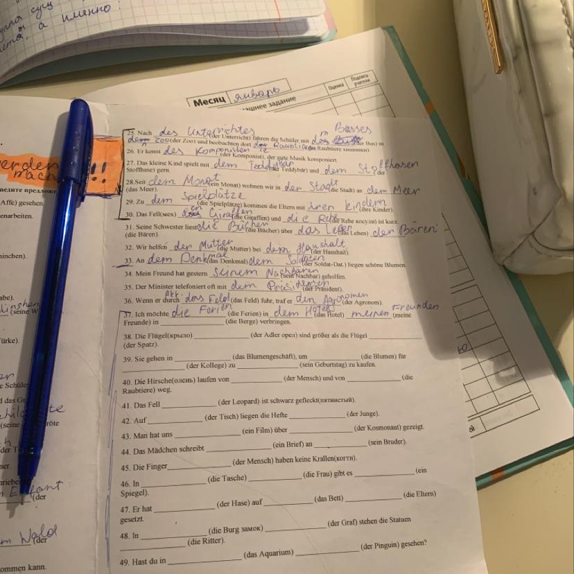 37. die Ferien, dem (im) Hotel, meiner Freunde, den Bergen
