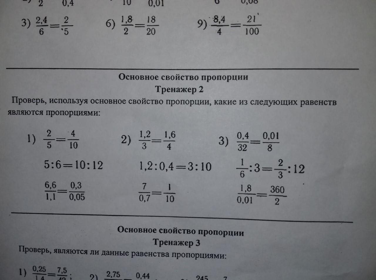 Знаком "-" отмечены равенства, которые не являются пропорциями.