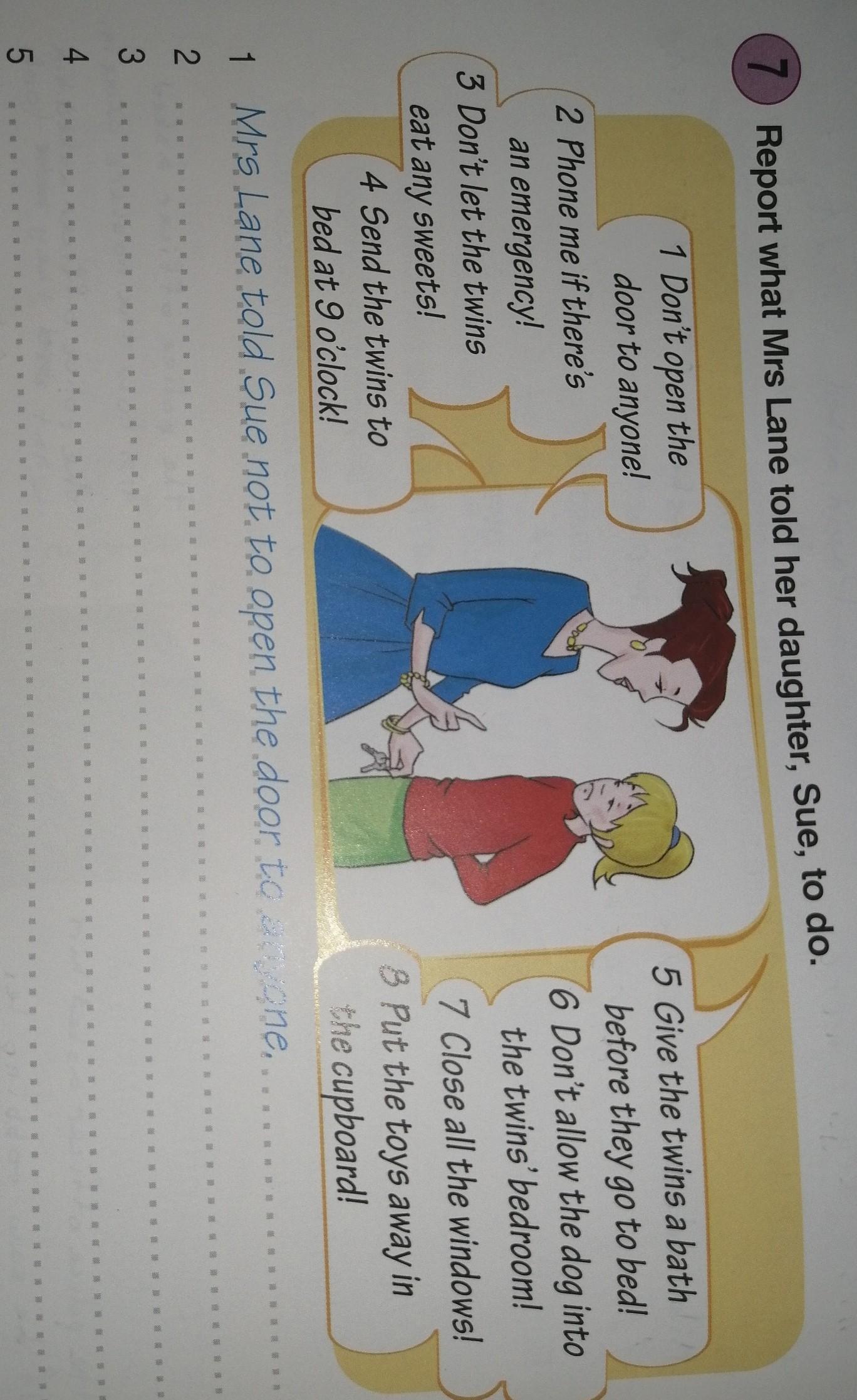 6. Mrs Lane told Sue not to allow the dog into the twins’ bedroom.