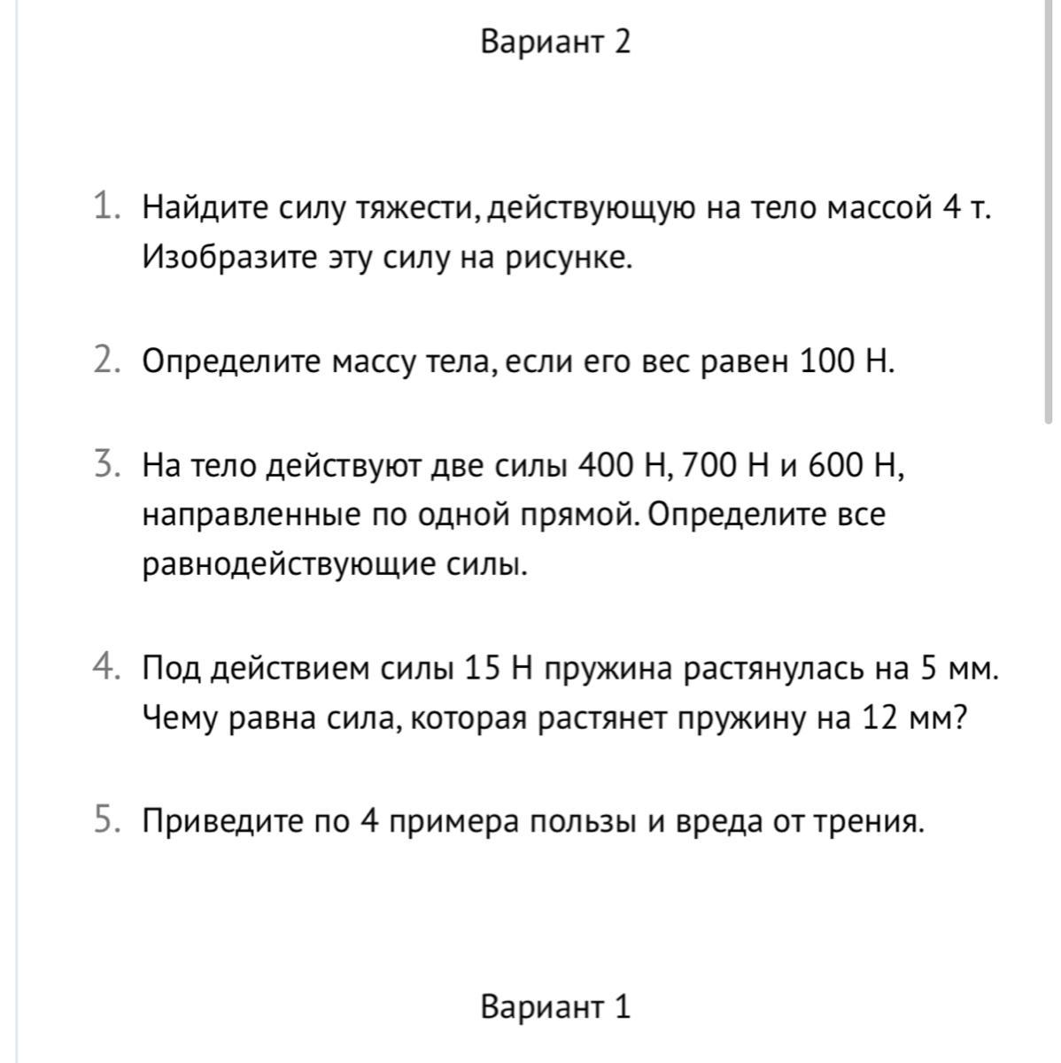 1. F = mg, g = 10, m = 4 т = 4000 кг