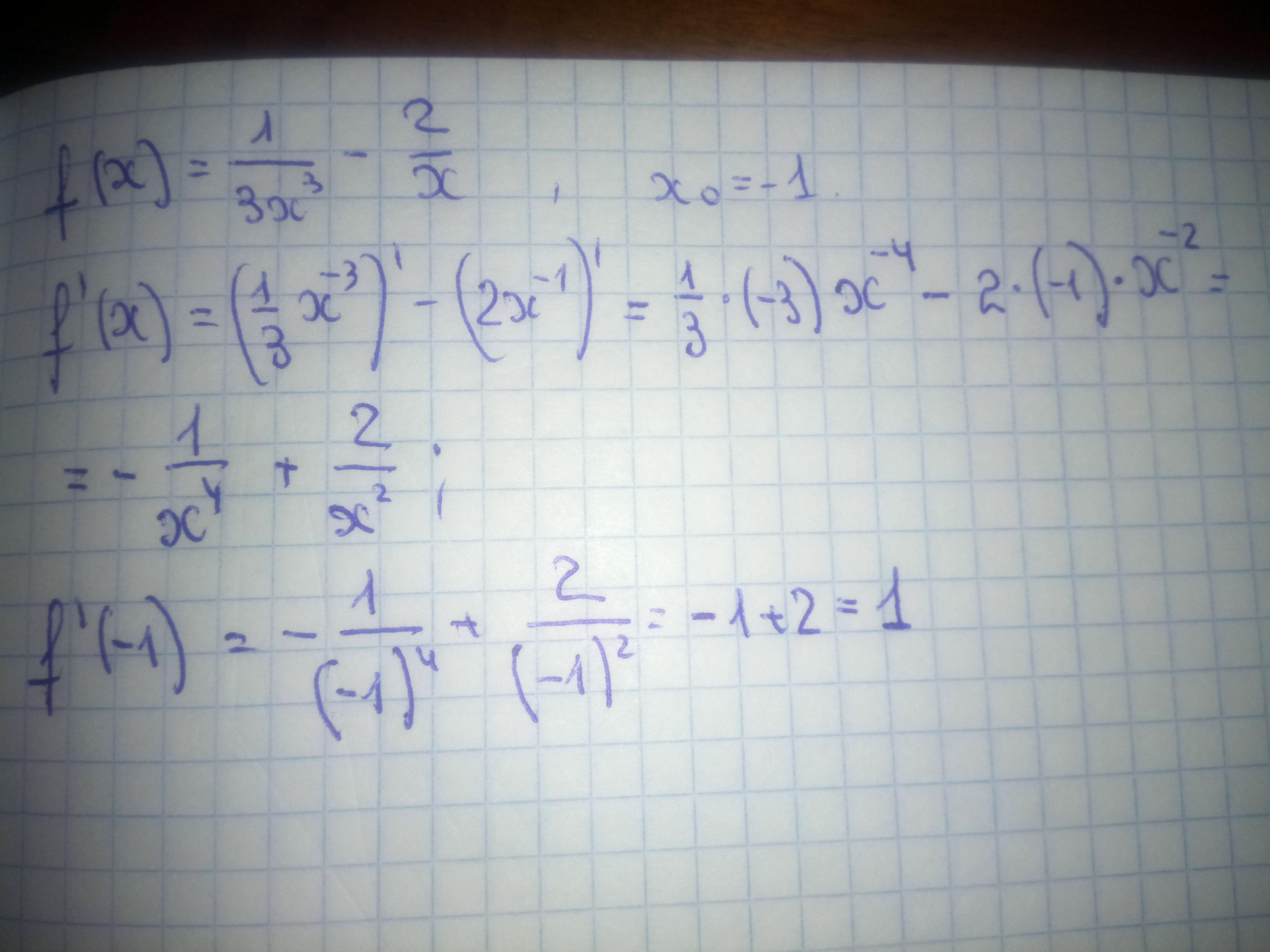 Найдите значение производной функции f (x) =1/3x³ – 2/x в точке