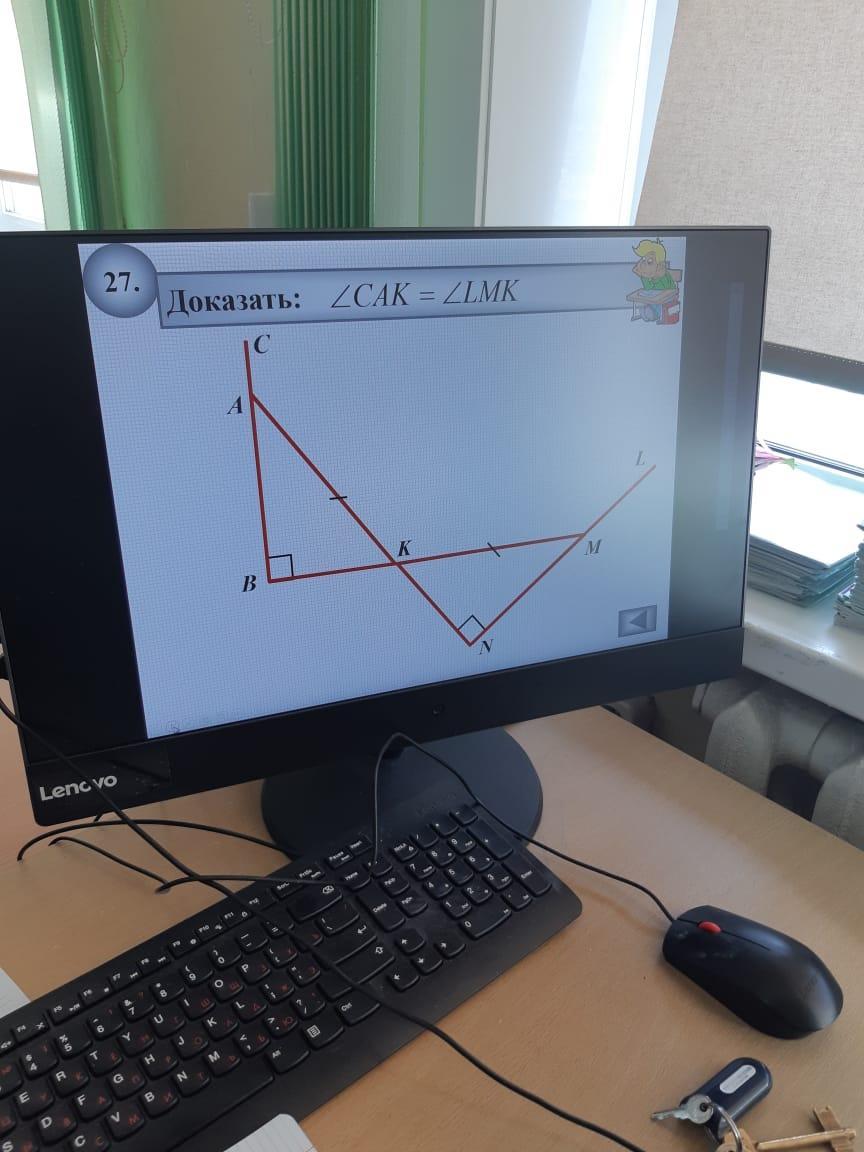 Значит, ∠ВАК=∠NMK (в равных треуг-ках соответственные элементы равны),