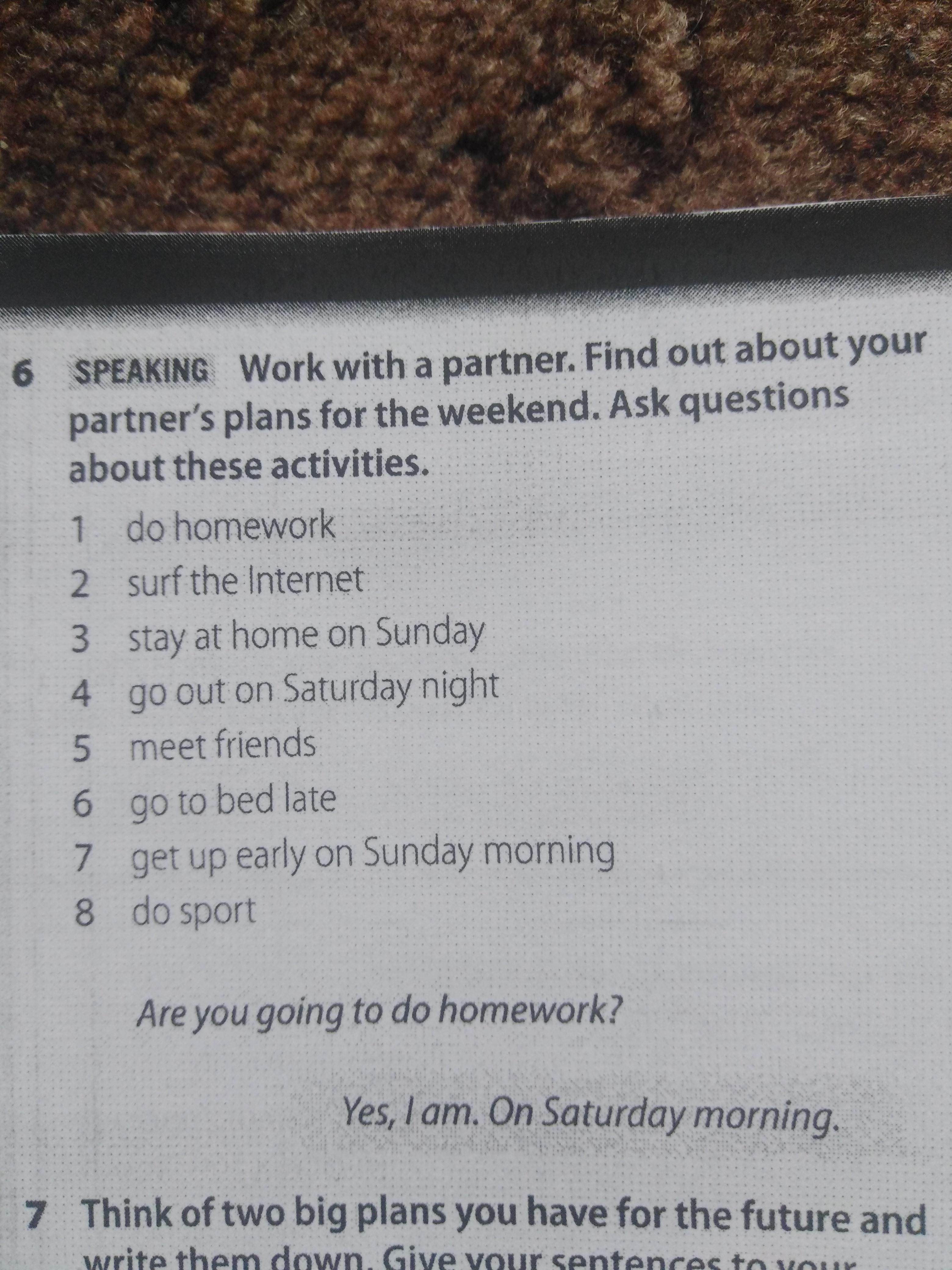 7) Are you going to get up early on Sunday morning?