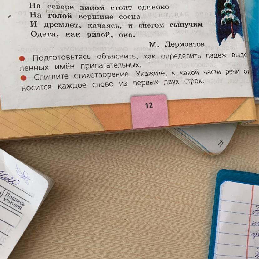 На ( предлог) голой ( прилагательное) вершине ( существительное ) сосна ( существительное)