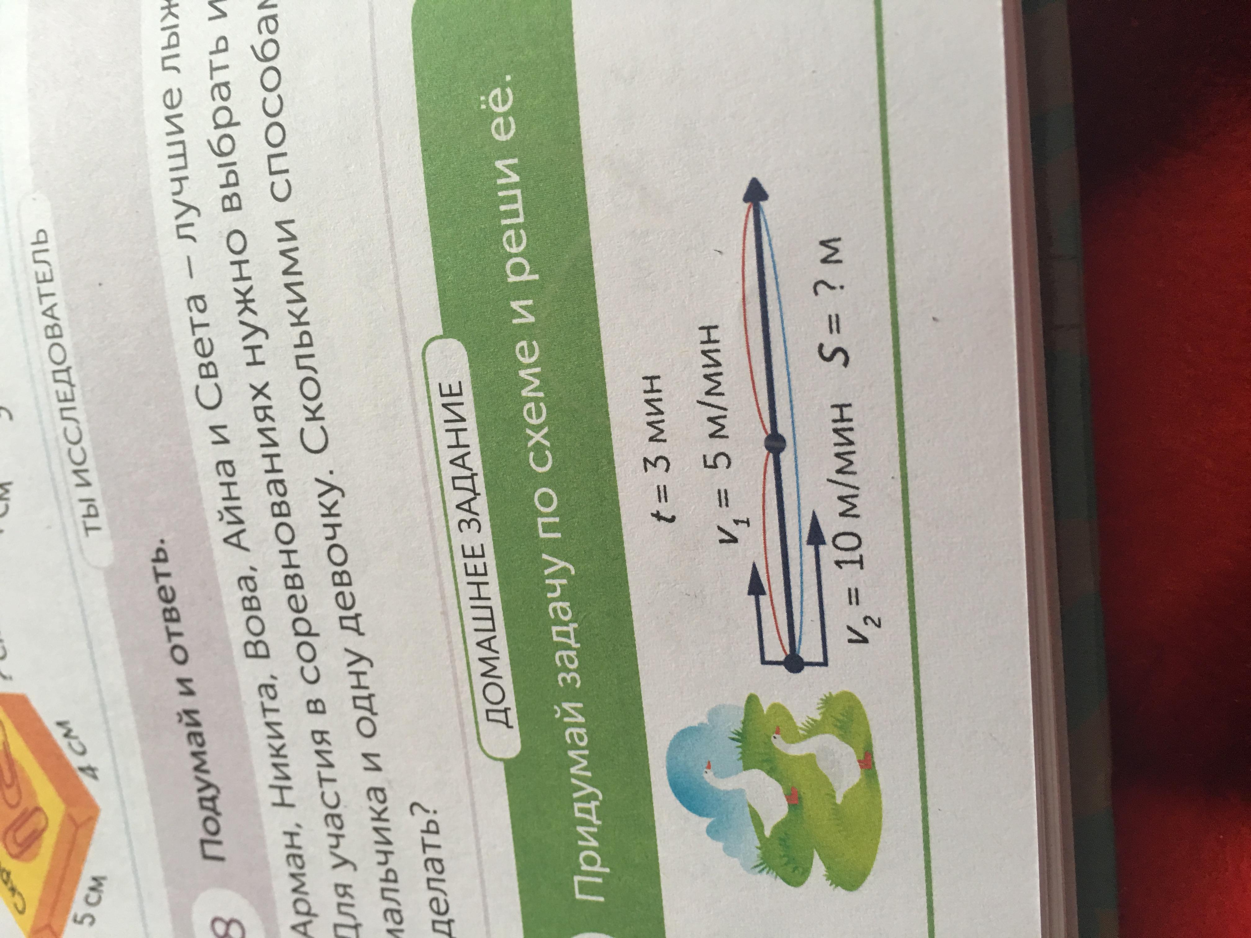 Папа гусь двигается со скоростью 10м/мин,а его младший брат со скоростью 5 м/мин. Какое они преодолеют расстояние вместе, если будут идти 3 минуты