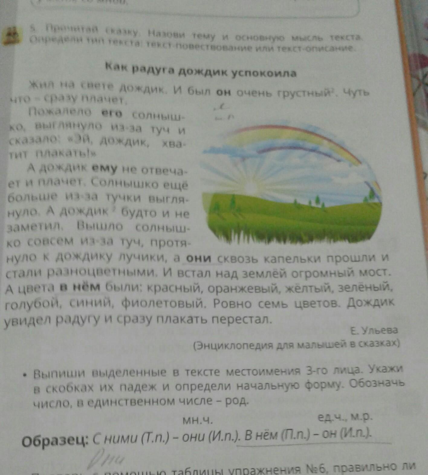 1. Тема: В данном тексте рассказывается о том как солнышко порадовало дождик радугой. Еще можно сказать, что этот текст о появлении радуги.