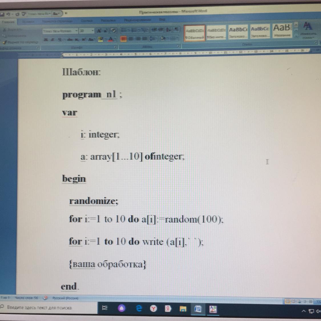 Задание : заполнить массив 10 случайными числами в диапазоне 0.. 100 и среднее арифметическое всех элементов массива
