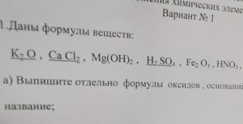 1. Оксиды : К2О - оксид калия