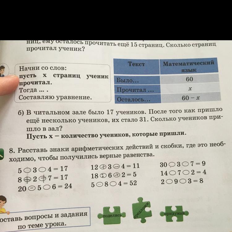 расставь знаки арифметических действий и скобки ,где это необходимо ,чтобы получились верные равентсва