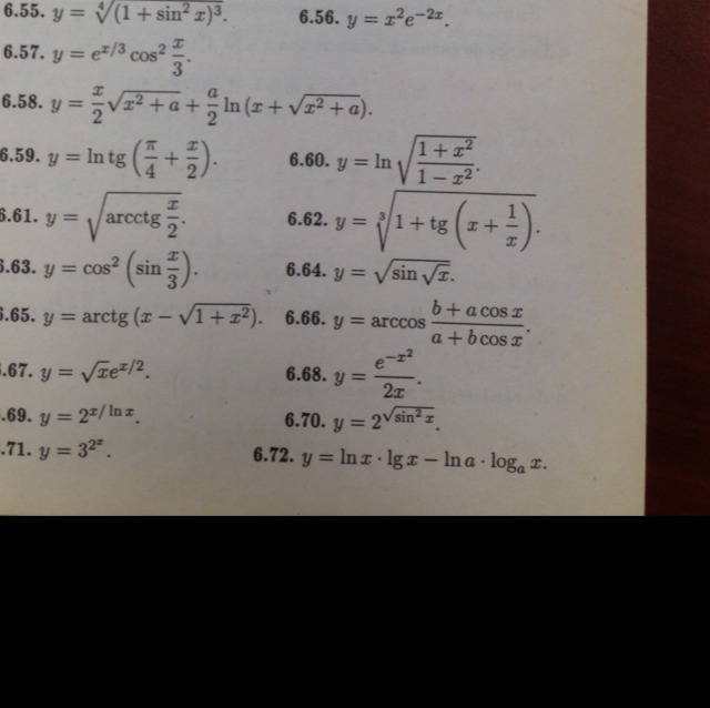 я люблю производные, но не до такой степени что бы тебе их 17 штук делать, если бы штук 5 тогда ладно, а сама что не можешь? f(g(h(x)))-это производная сложной функции просто начинаешь с самых внешних скобок(в первом примере это корень), потом от (х)^3=3(х)^2 а потом от внутренностей, и всё это перемножаешь, а так тебе делать это никто не будет даже не надейся, надейся лучше на себя
