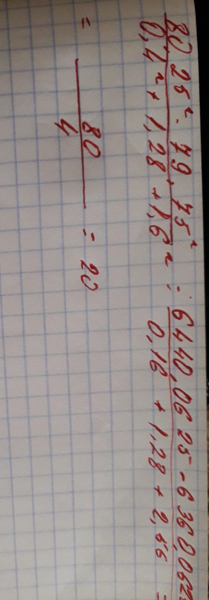 (80,25-79,75)*(80,25+79,75)/(0,4+1,6)²= 0,5*160/2²= 80/4= 20
