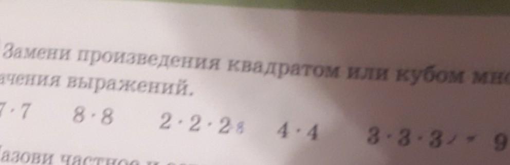 5.Замени прозведения квадратом или кубом множителя.Вычисли