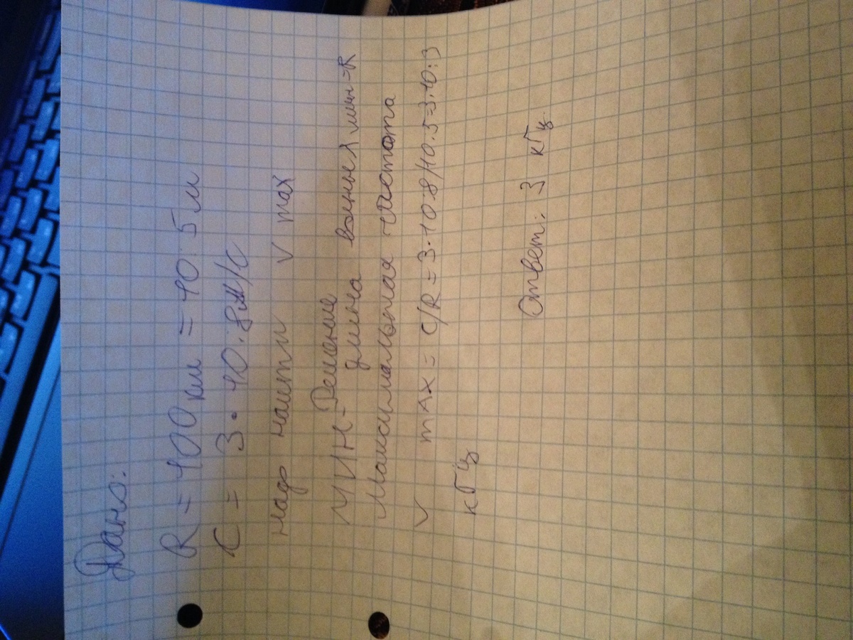 тогда максимальная частота v мах = с/R=3*10^8/10^5=3*10^3 Гц (или 3 кГц)